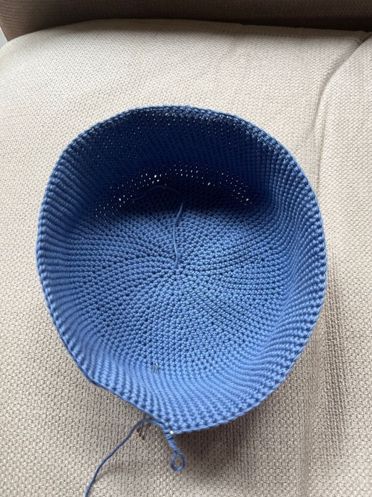 If you have a bigger head, keep increasing by 6 each row following the same pattern above, and keep note of the number of sts between increases to continue from here when we get to the brim.