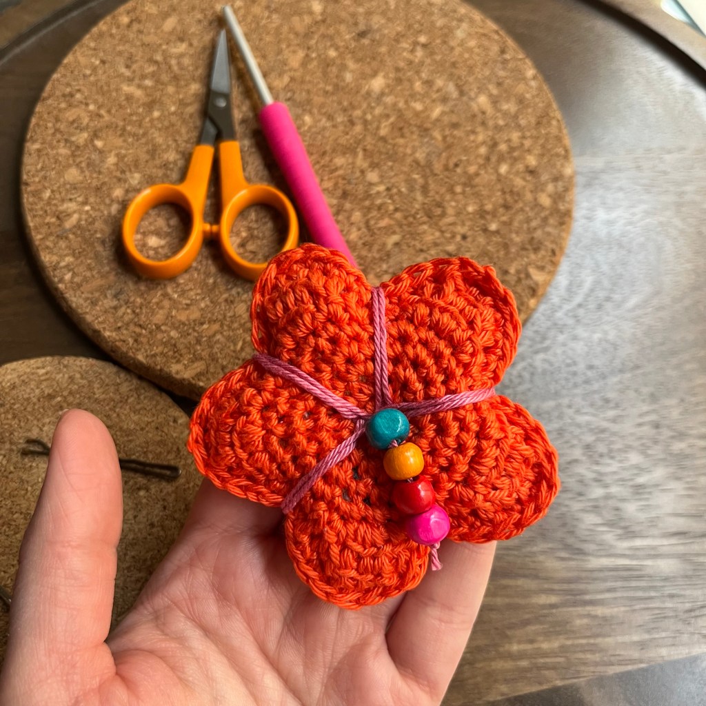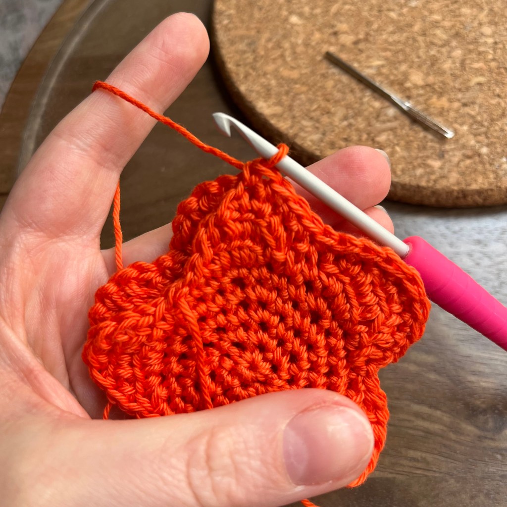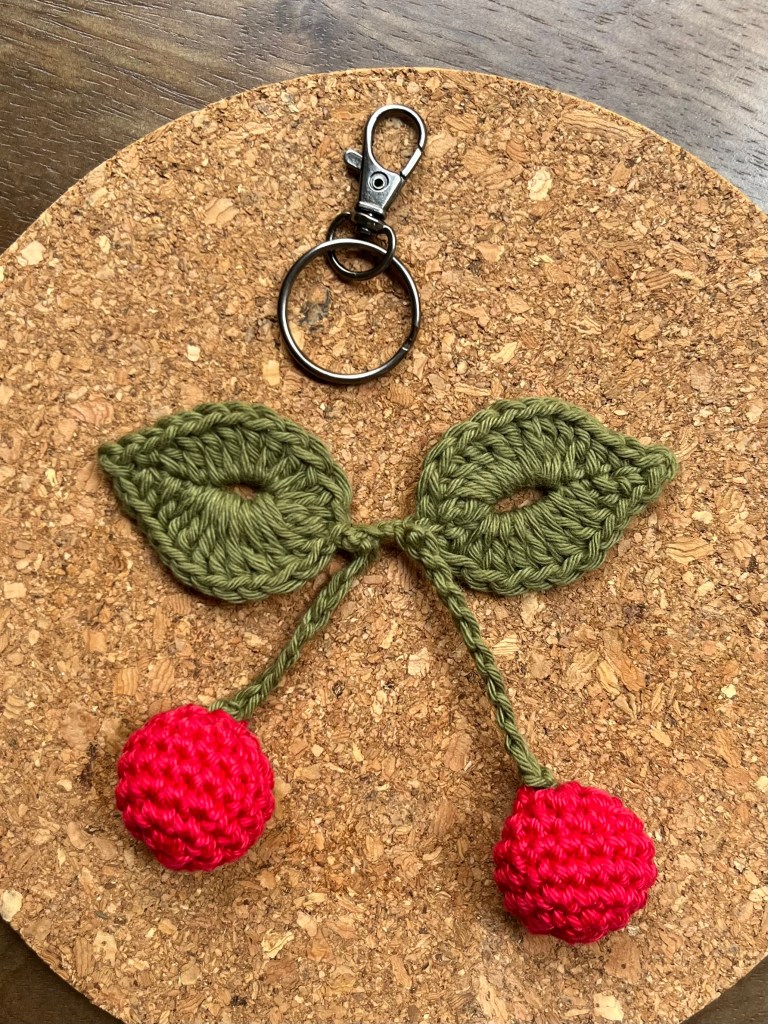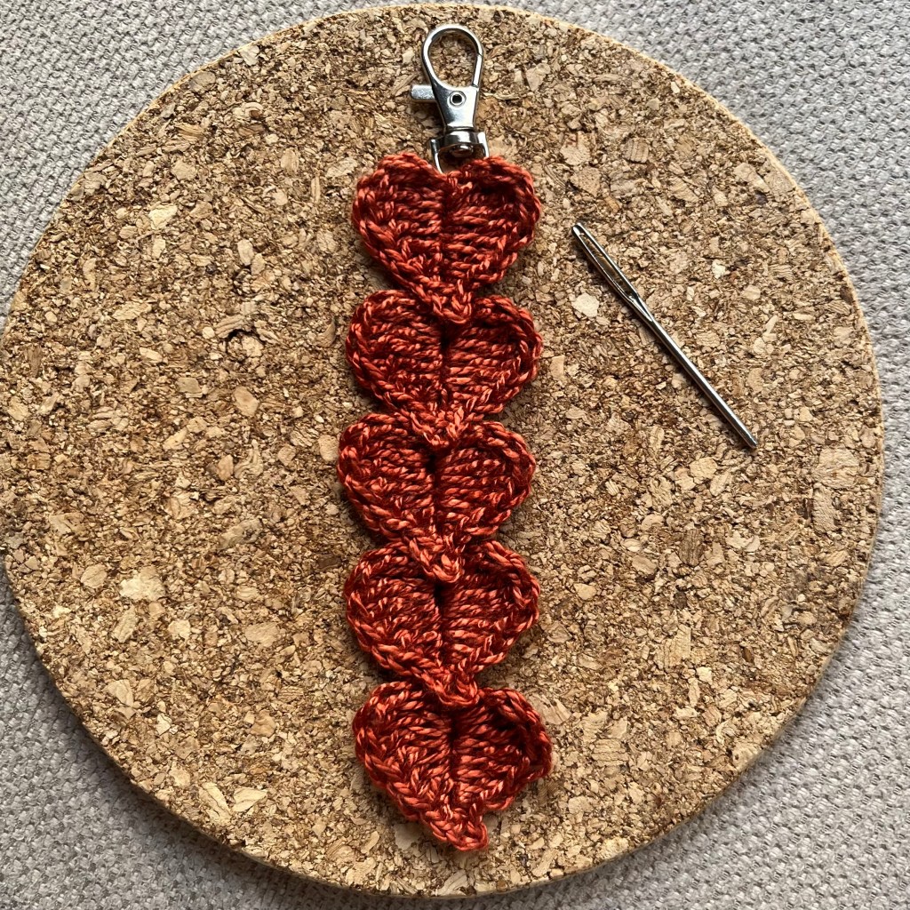 When you have finished your final heart, fasten off and attach to your keyring or tie a loop.