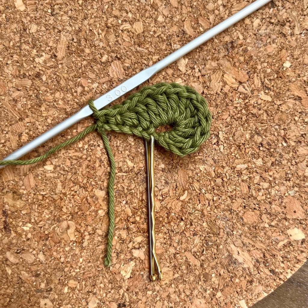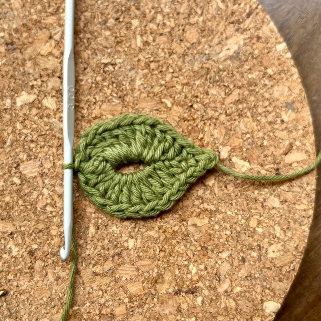 Make two leaves. I like to join them either side of the middle chain of the stem. And then use the middle chain in between the leaves to attach the key ring.