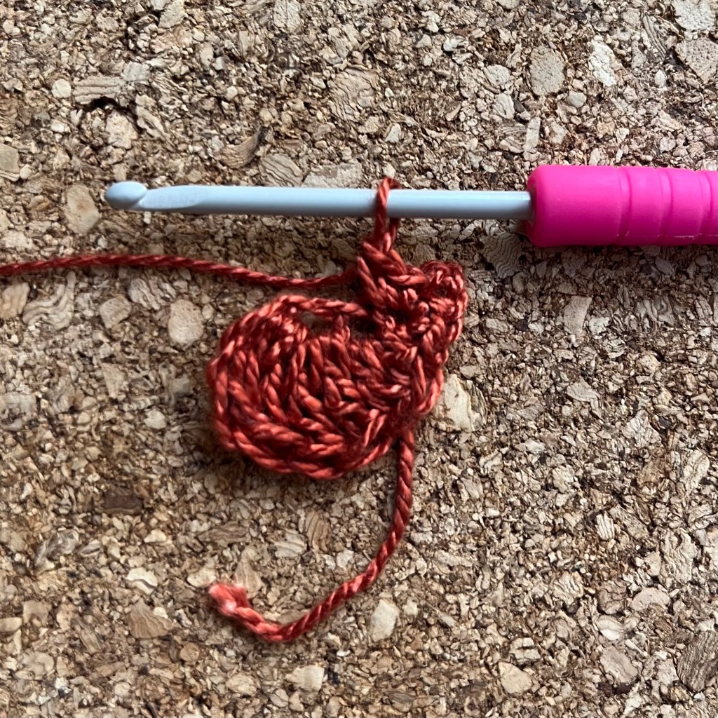 Using a yarn needle, weave the tail through the front loops of the 6 sts and pull tight to close the hole. Knot and weave in the end.