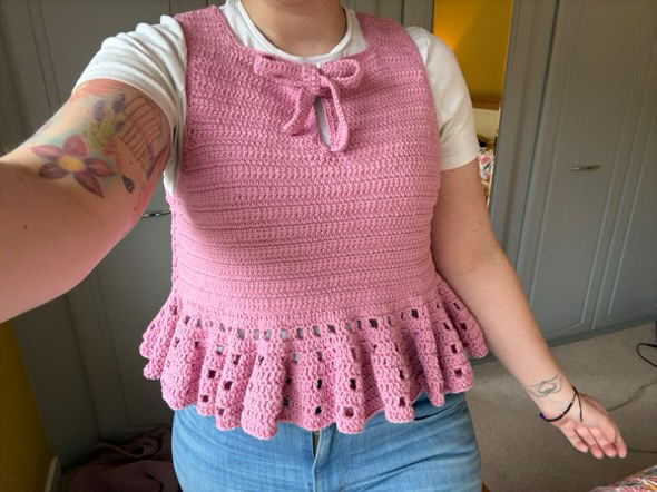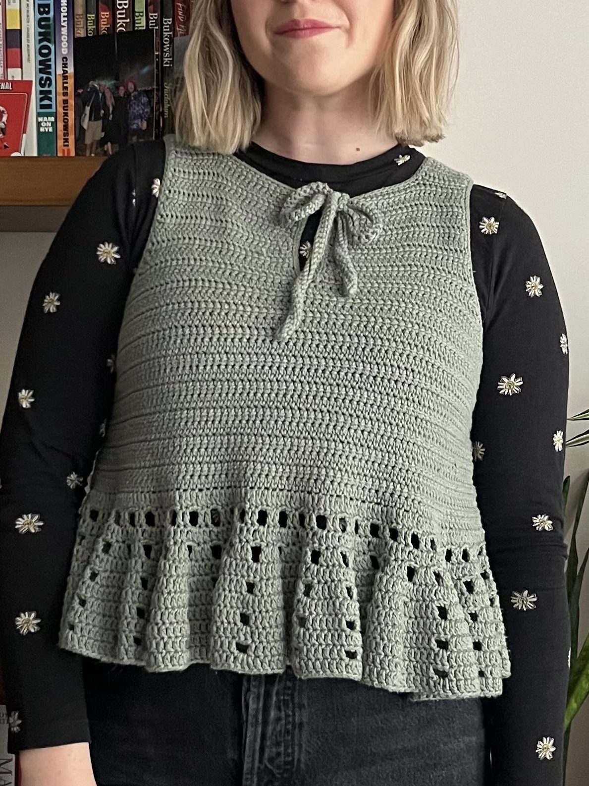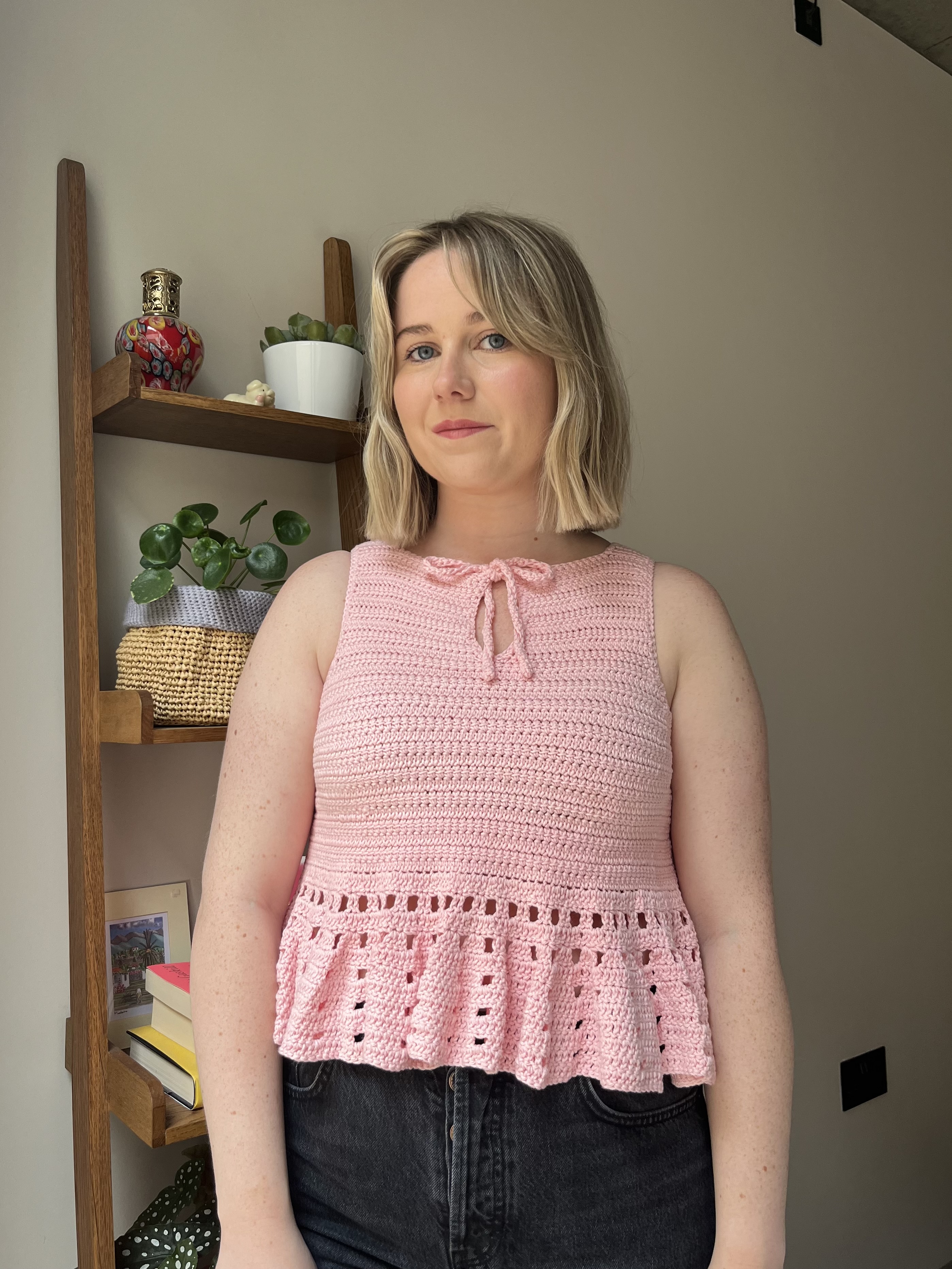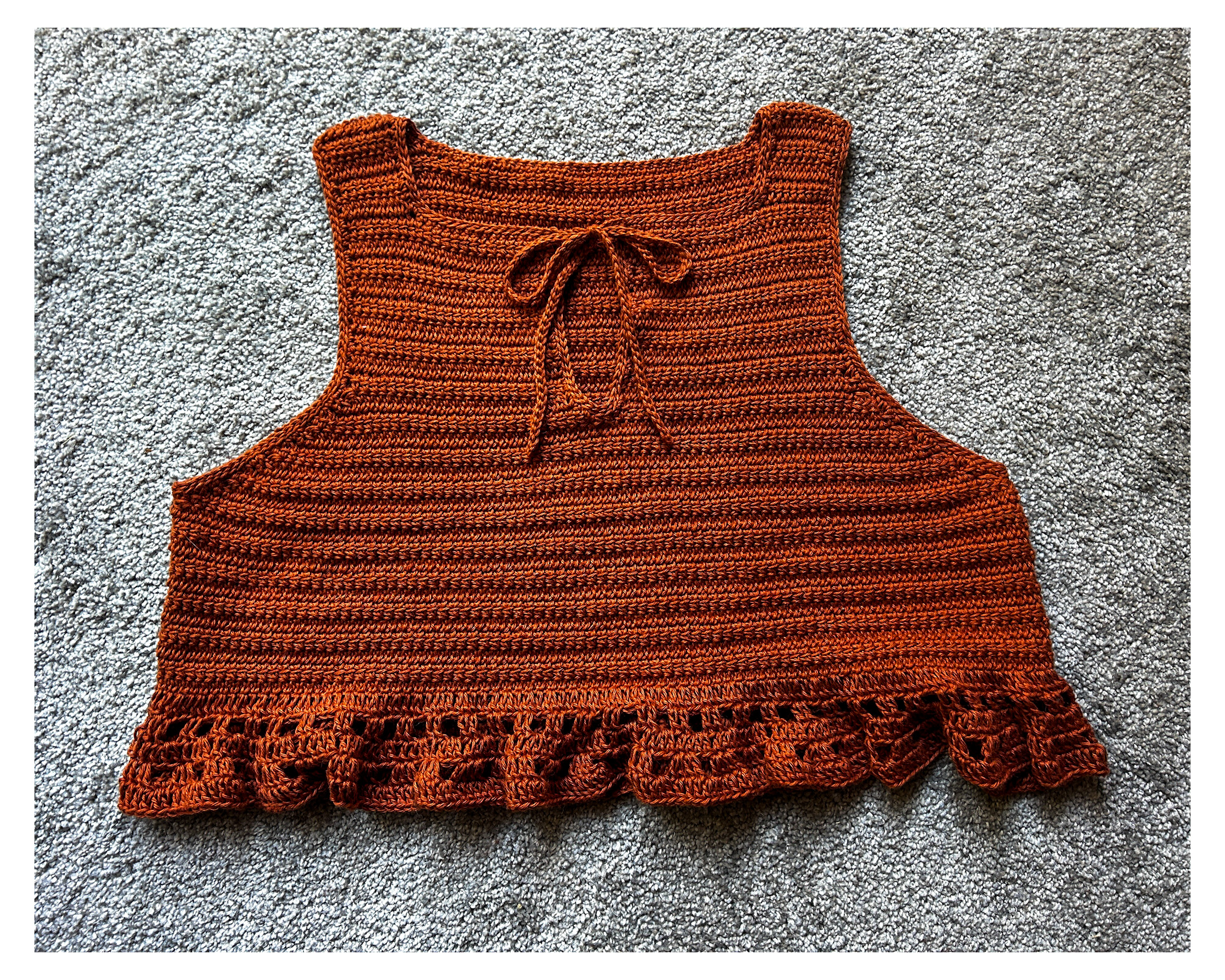 Introducing the ultimate crochet pattern for the perfect peplum tie-front top! This stylish, easy-to-follow pattern is designed to help you create a flattering, versatile top that’s perfect for every season. Made with soft, breathable cotton yarn, this crochet peplum top is a must-have for summer wardrobes—its lightweight feel and sleeveless design make it ideal for sunny days and warm weather. But it doesn’t stop there! Layer this timeless piece over a turtleneck or long-sleeve shirt to enjoy its chic style even in cooler months.